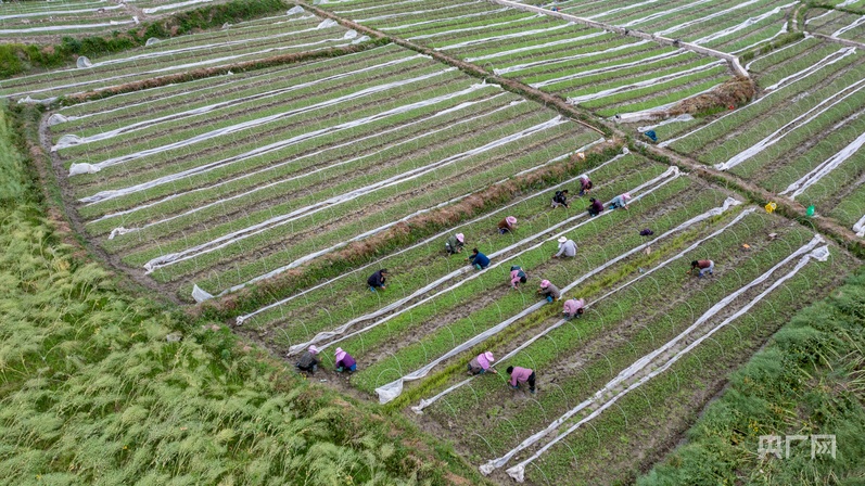 连日来,在贵州省黔东南苗族侗族自治州从江县贯洞镇宰门村辣椒集中育苗基地,村民们忙着对辣椒种苗进行除草、松土等管护作业,为种苗移栽定植打好基础。