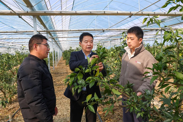 欧阳华代表(中)到“红美人”柑橘园调研果树产业发展情况。(代表供图)