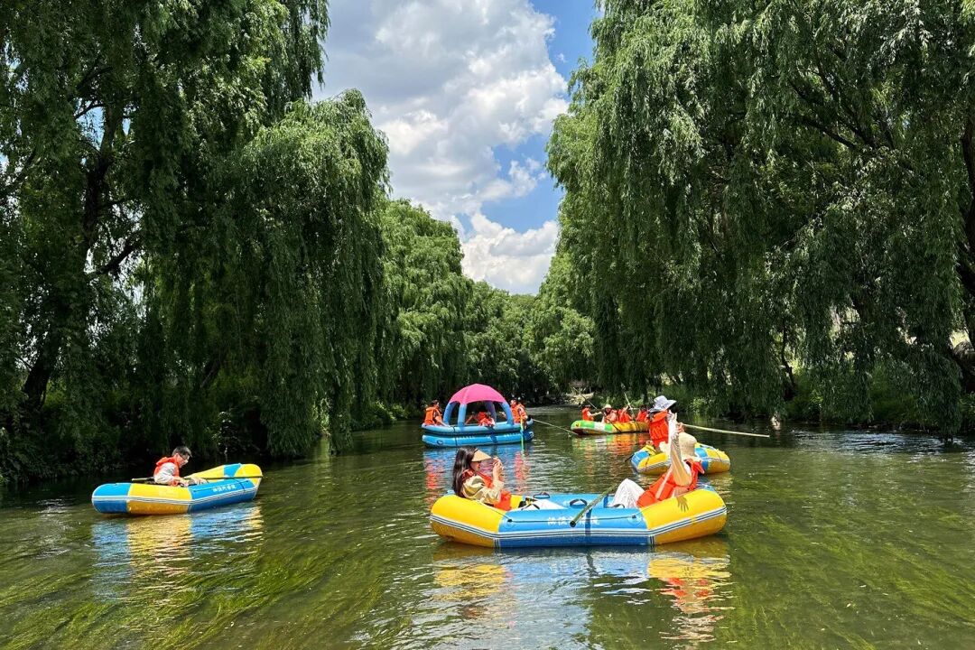 金秋时节,洒渔河畔依旧生机盎然。河岸百年柳树下,游客漂流在清清河水间。巡龙村农文旅示范带内,康养绿道蜿蜒,乡愁书屋静谧,网红桥上笑声朗朗,而河面的漂流皮划艇更是划出了一条“绿水青山”通向“金山银山”的涟漪。