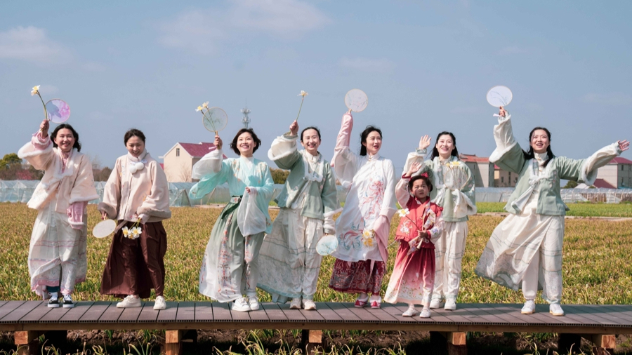 活动中,水仙汉服走秀、江南丝竹演奏与清新诗朗诵同台演绎;在向化好物展示区,传承百年的灶花、土布工艺,与新颖时尚的水仙文创、数字文旅路线图相映成趣,吸引了众多游客驻足体验。同时发布的《崇明水仙质量标准》,标志着产业迈入标准化、品质化发展的新阶段,是“种植标准化、产业数字化、产品文创化、营销品牌化”发展思路的关键一步。