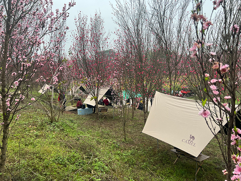 本次桃花文化旅游活动以“品富顺豆花·赏板桥桃花”为核心,打造了集吃喝玩乐于一体的游玩体验,让游客尽享乡村乐趣。活动现场不仅有专业表演团队带来的精彩文艺演出,更有趣味十足的“竞技逮鸡”活动,游客抓到的土鸡可免费带回家,沉浸式体验乡村生活的欢乐。针对亲子游玩需求,园区设置了各类游乐设施,让孩子们尽情嬉戏;林间还搭建了露营帐篷,推出烧烤套餐,为游客提供多元化的休闲选择。